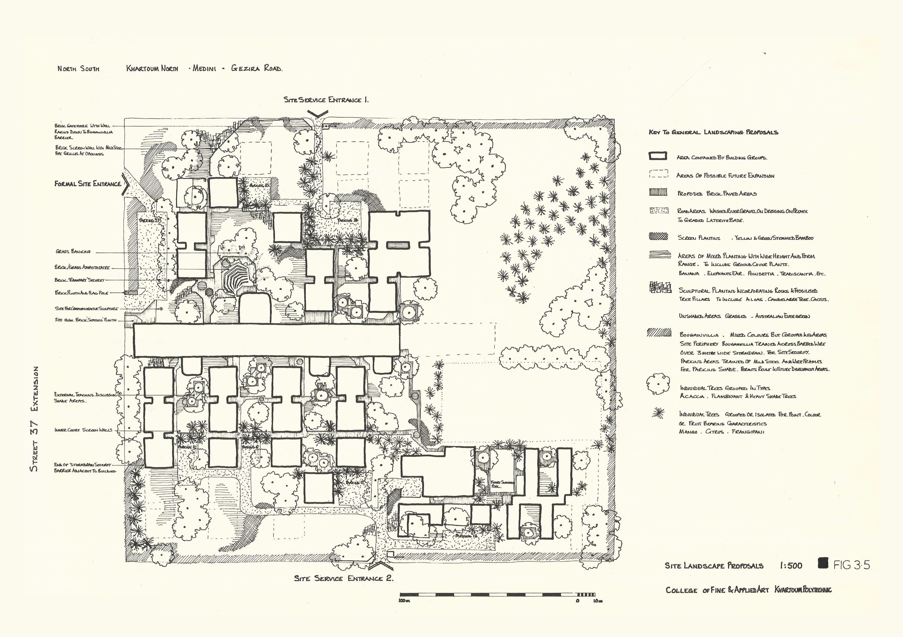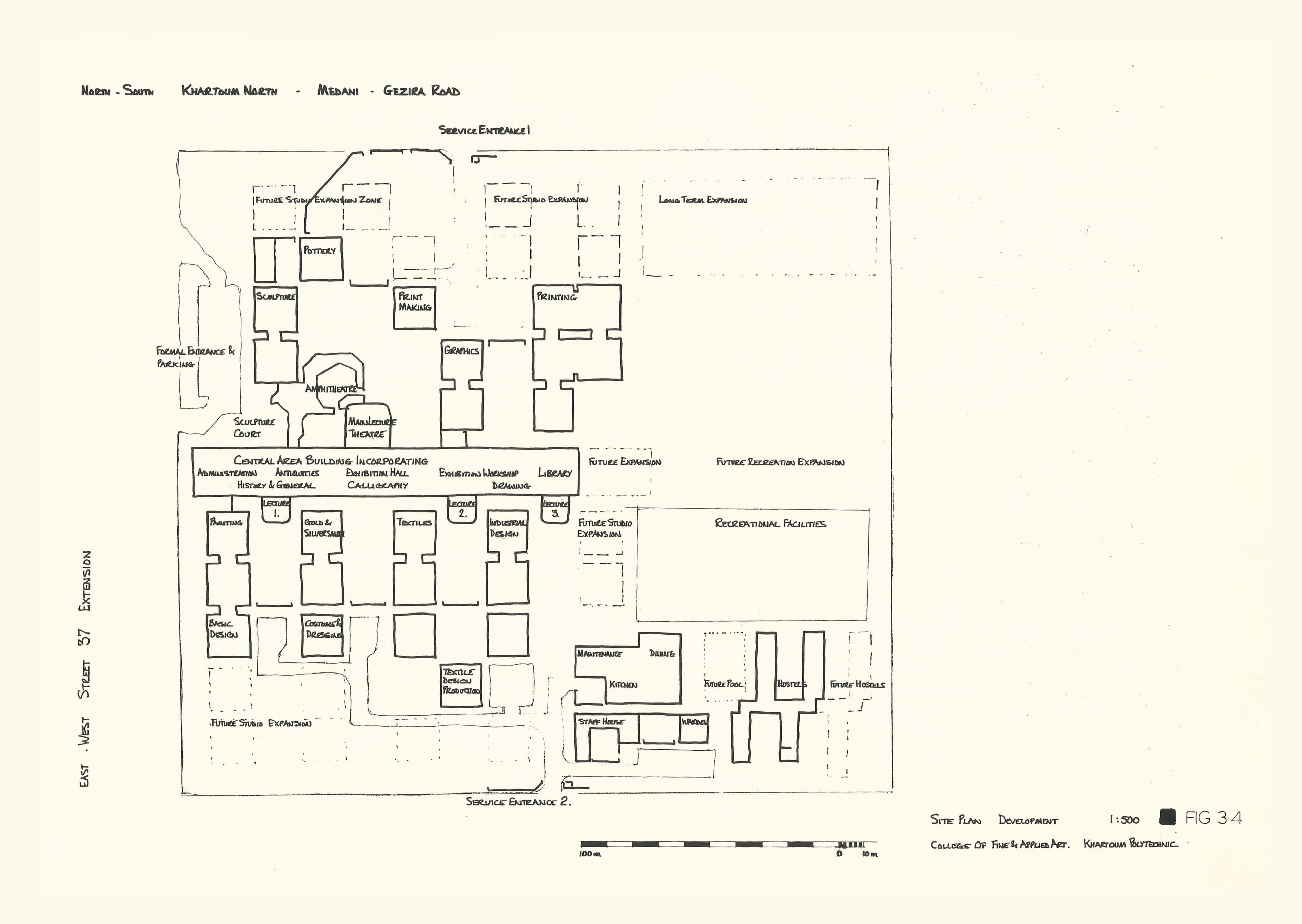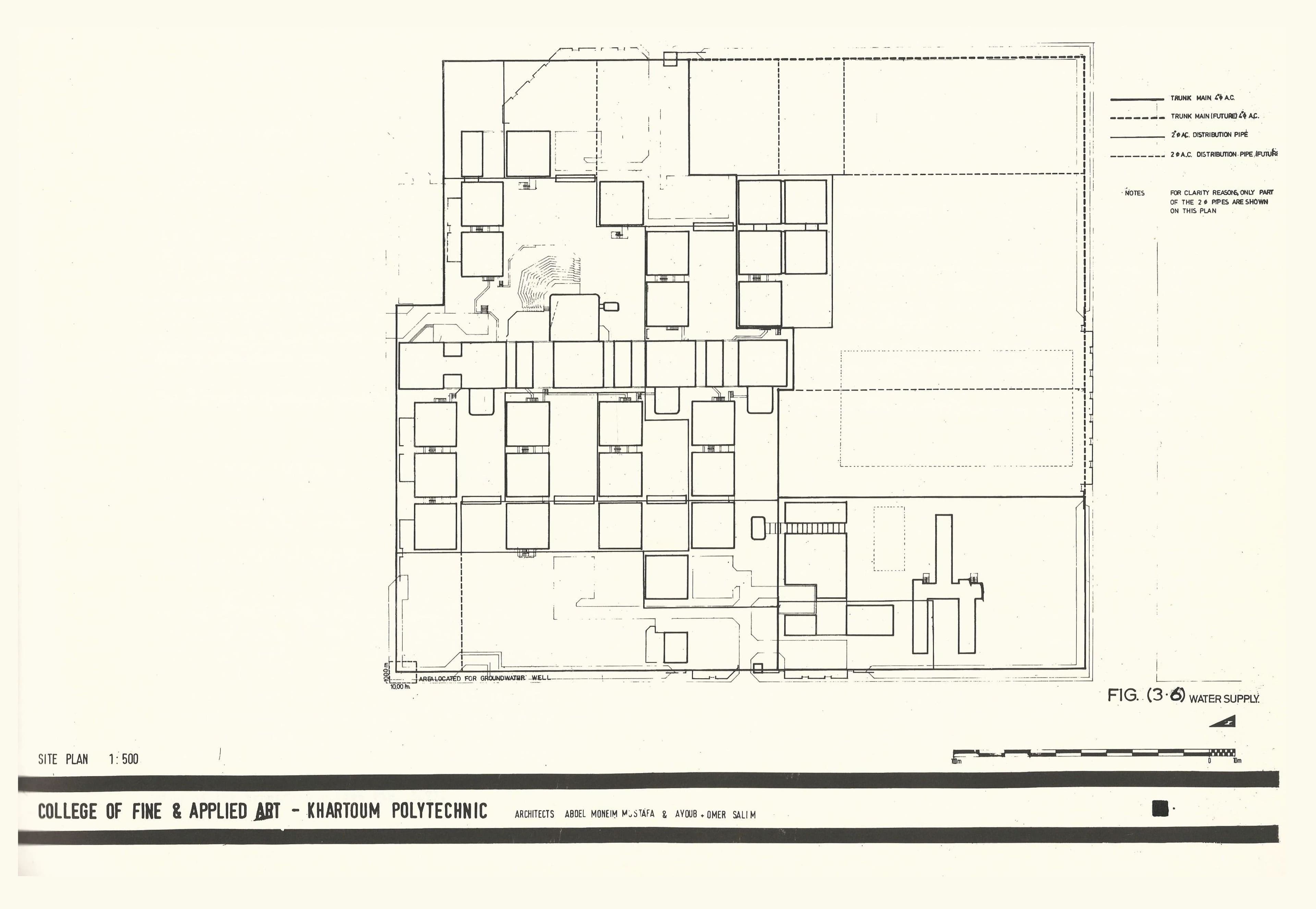 Omer Salim, Abdel-Moneim Mustafa and Mohammed Hassan Ayoub; Khartoum Polytechnic Complex, College of Fine and Applied Art, Sudan 1978. Adjacent and site services. Omer Salim, Abdel-Moneim Mustafa and Mohammed Hassan Ayoub; Khartoum Polytechnic Complex, College of Fine and Applied Art, Sudan 1978. Adjacent and site services. Canadian Centre for Architecture:, Wikimedia Creative Commons Attribution-Share Alike 4.0 International license