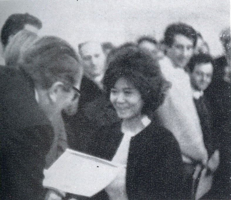 Mila Ruiz Hizon receiving her Dept. of Tropical Studies Certificate from Prof. Calder, 1964.