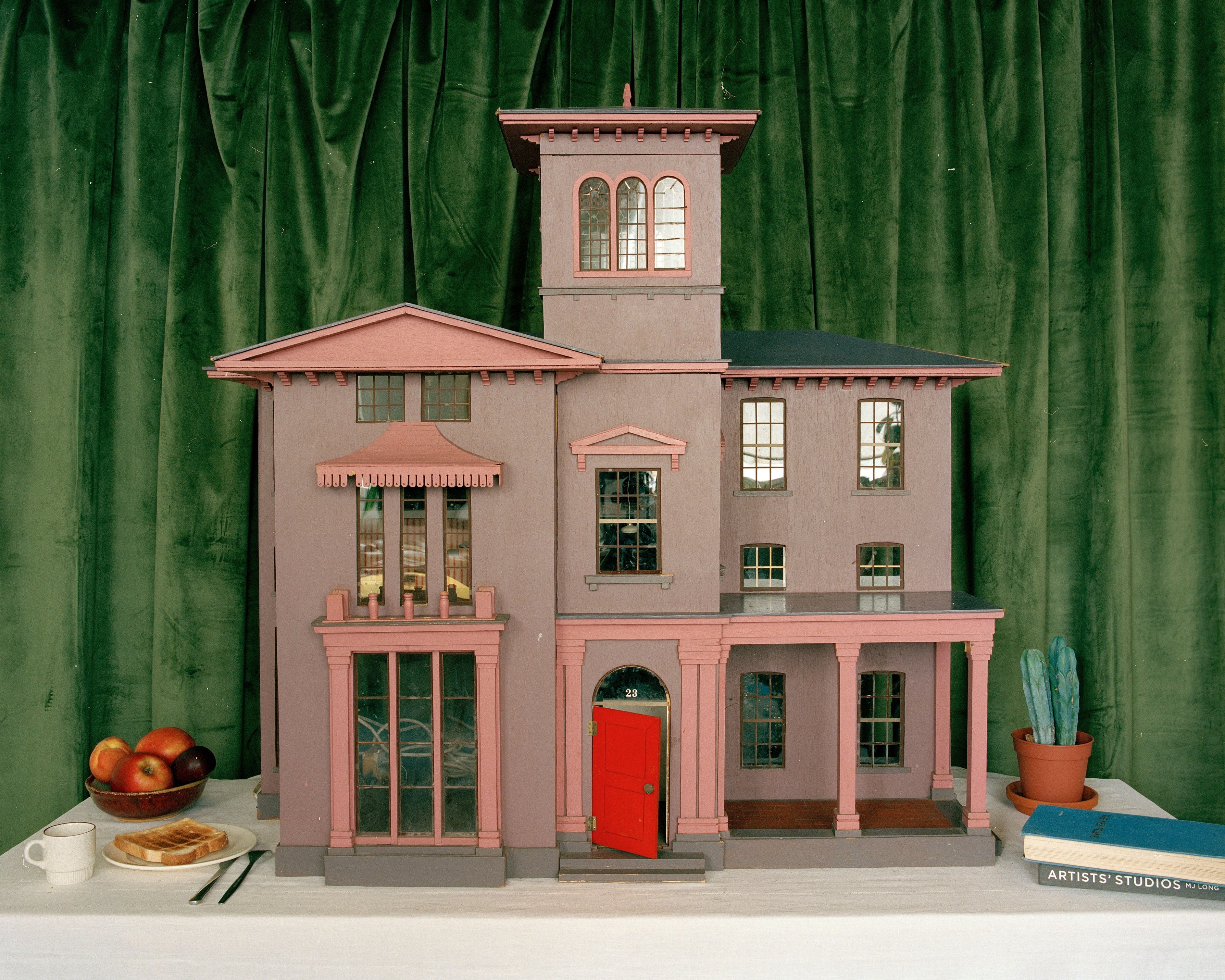 MJ Long built Sal’s doll’s house on the floor of the living room in the home she shared with her husband and business partner Colin St John Wilson. Together they co-designed the British Library in London and, during a particularly fraught stage in the process, she chose to devote her limited free time to the painstaking construction of this structure, incorporating aspects of her childhood, academic interests and personal life to create this large timber object whose style is distinct from anything she made in practice.