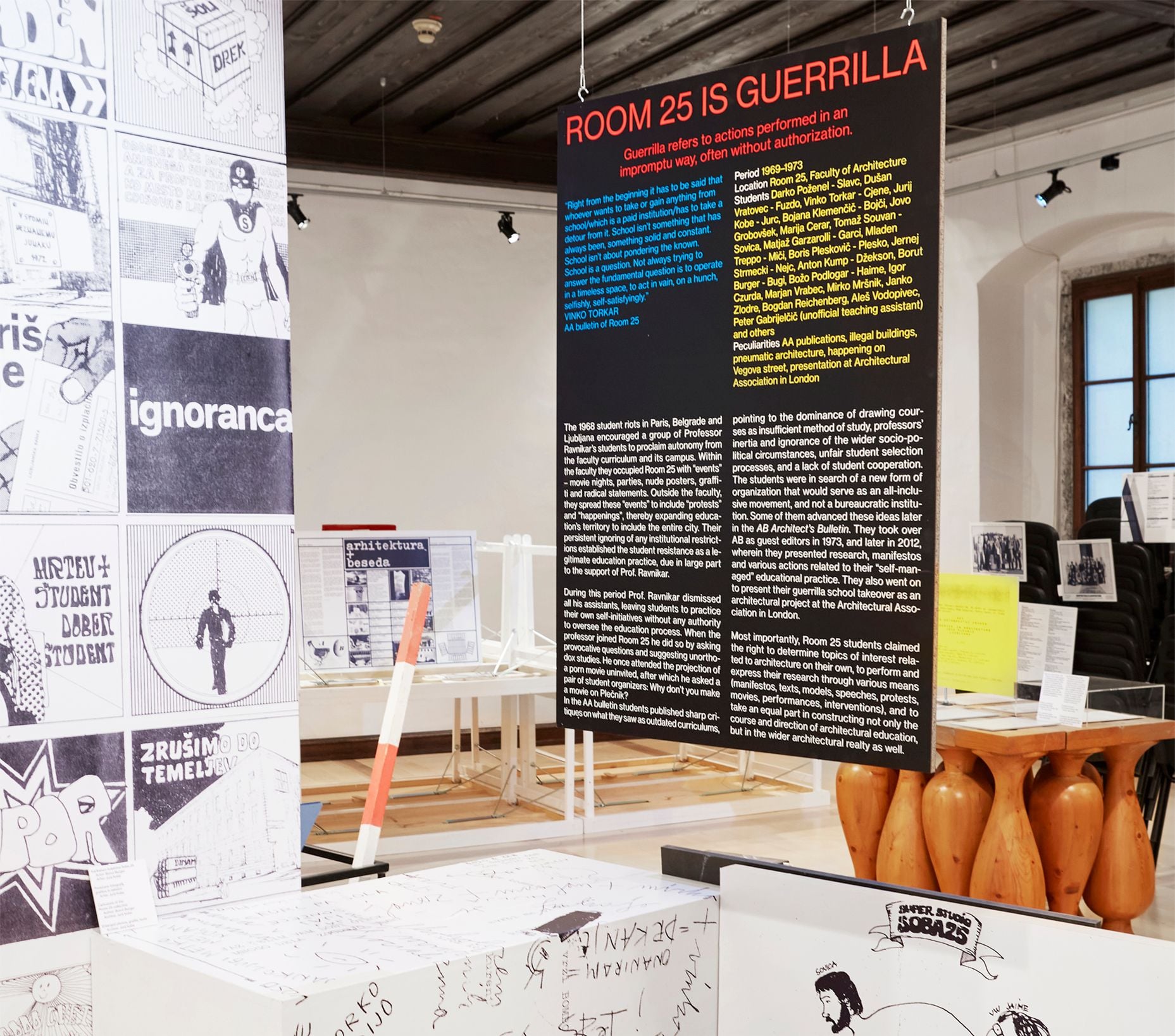 Both in Slovenia and elsewhere in the world, alternative practices and spinoffs have appeared parallel to institutional architectural education ever since its beginning, displaying a different potential for the concept and development of architectural education. The exhibition is centred around seven stations representing seven architectural education practices from 1960 to the present. Each station produced different architectural education and knowledge production apparatuses that differed in form and content from the approved curriculum. This is why the actions and products presented at these stations were relevant not only at the given historical moment but remain so today, because they demonstrate the need to question existing architectural education models.
