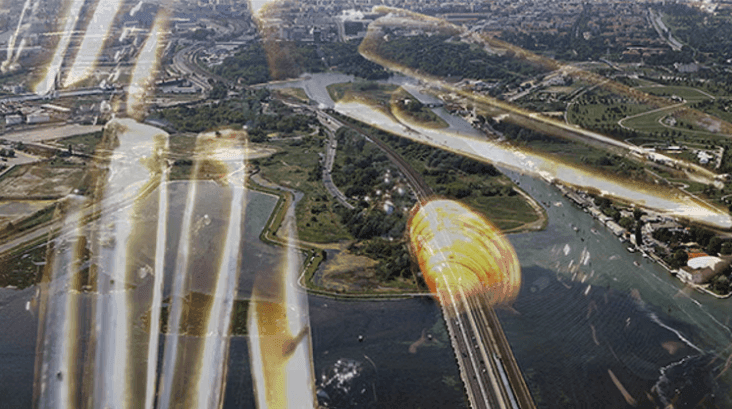 Image: The architect Nigel Coates leads a project to understand how a new settlement could be developed on the Venice mainland. Film still: John Maybury 2025.