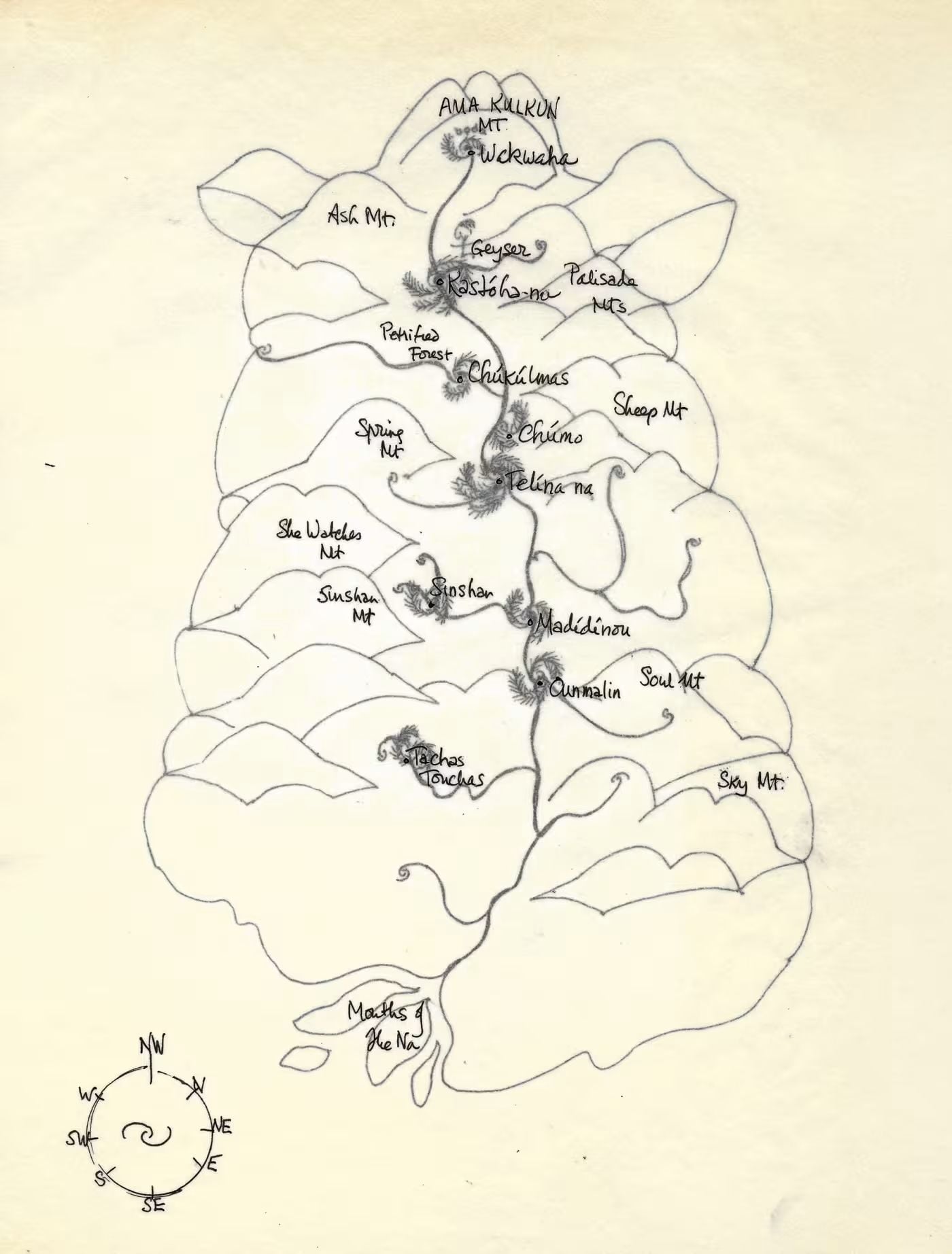 Image: Talismanic map of the Valley, with place names, 1985, at The Word for World: The Maps of Ursula K Le Guin, 10 October to 6 December © Courtesy Ursula K Le Guin Foundation
