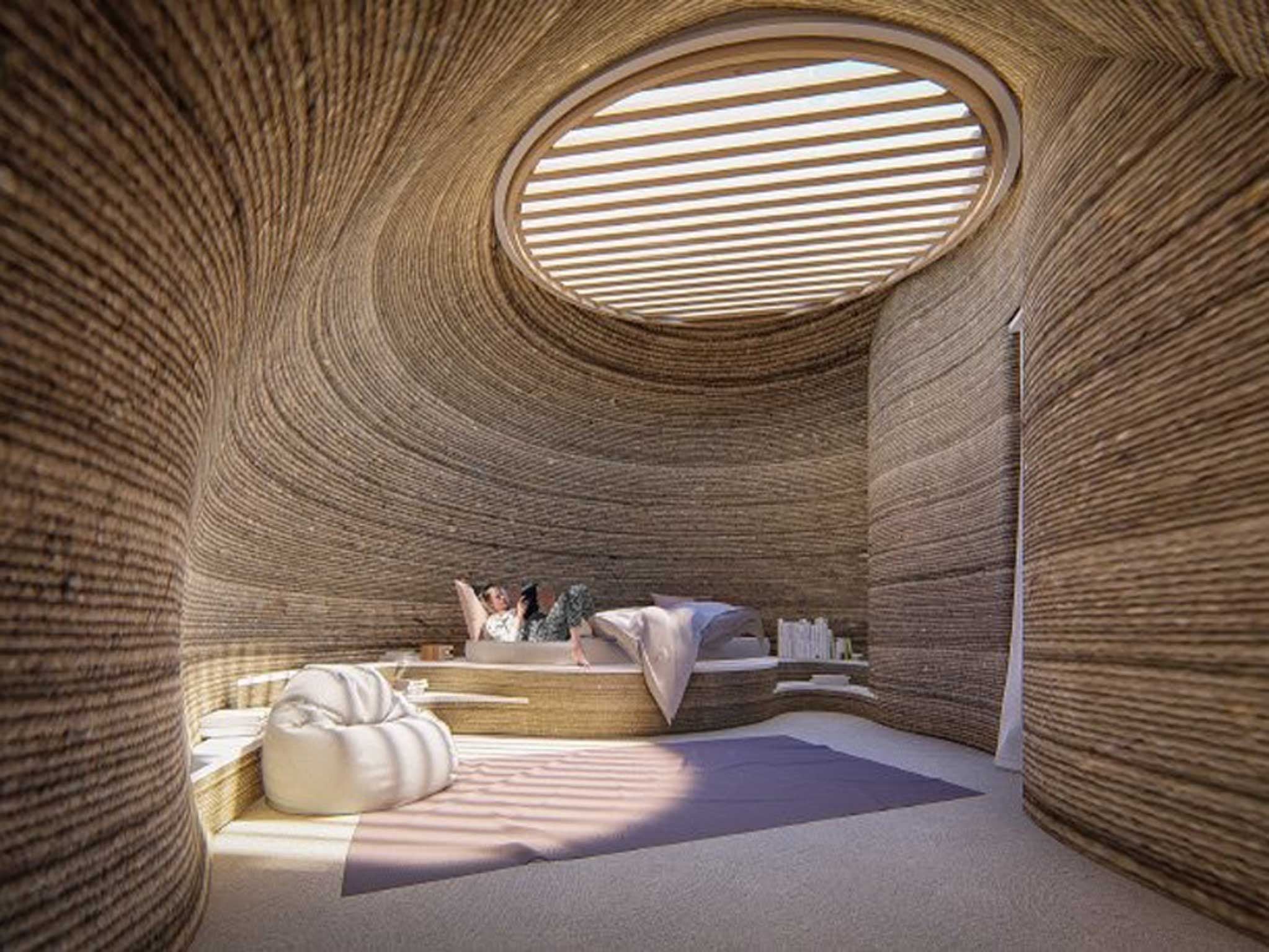 A 3D-printed habitat for sustainable living developed using research conducted with AA SED students is under construction in Italy