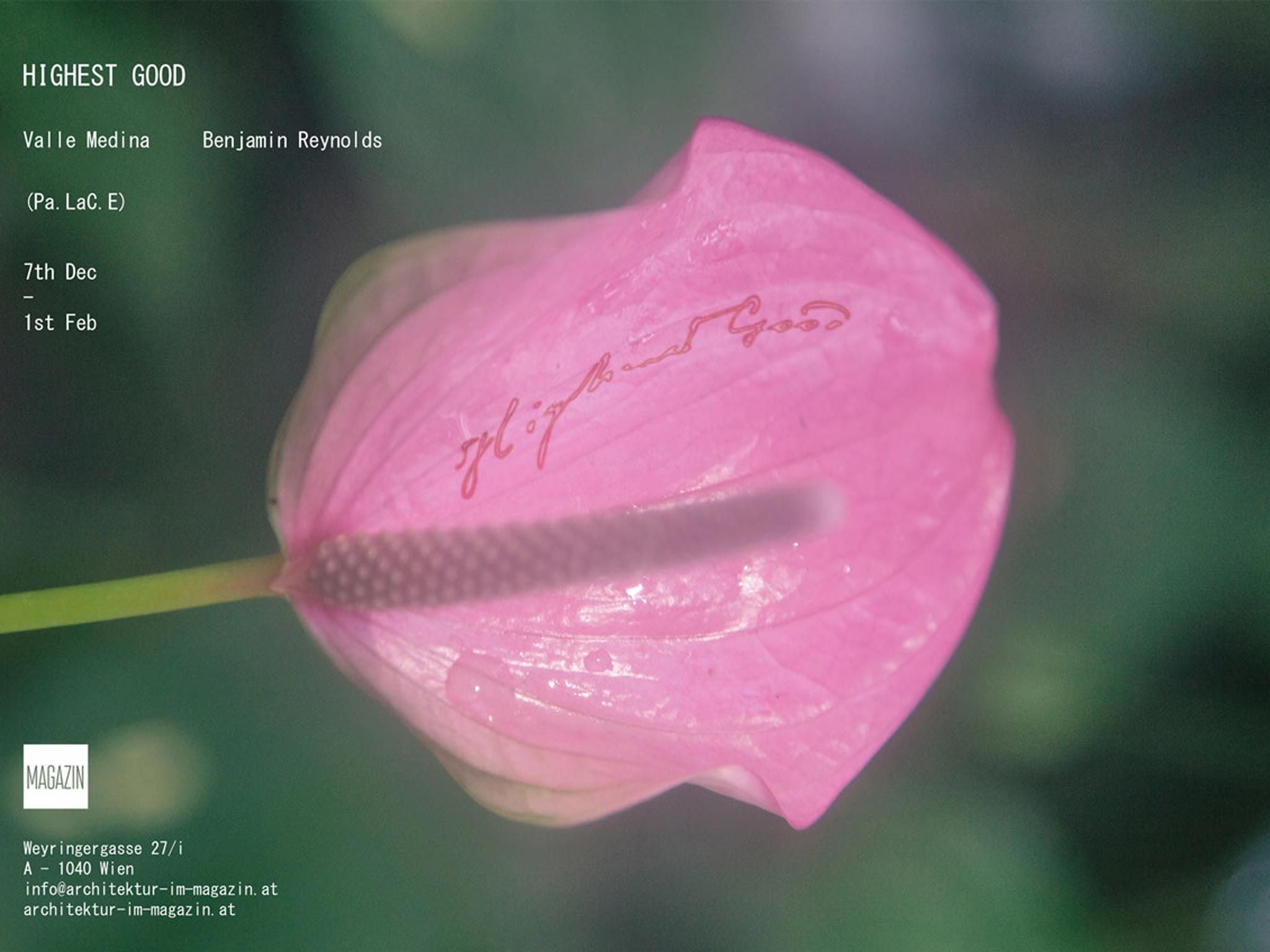 HIGHEST GOOD an exhibition by Pa.LaC.E opens Friday 7th December in Vienna