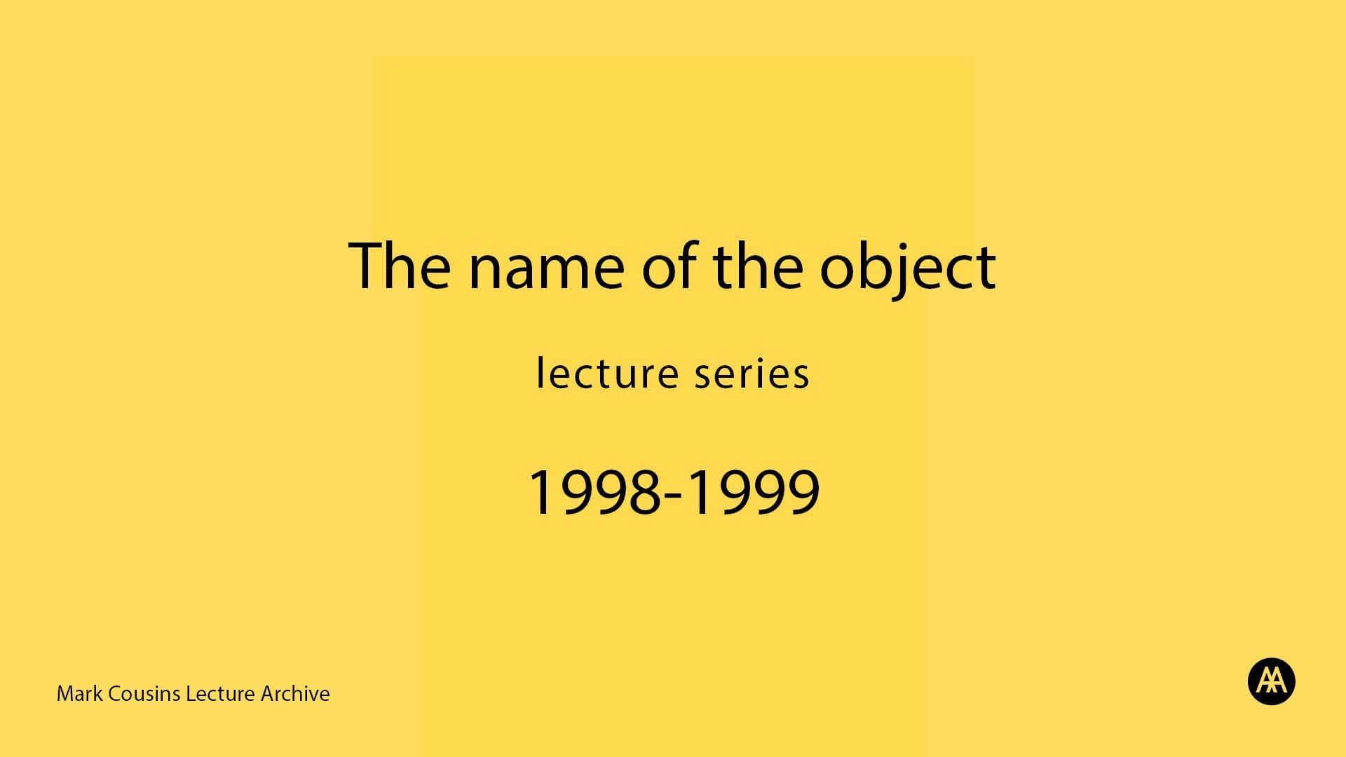 Admin History: The recording is of the 6th lecture in the series entitled 'The Name of the Object', given by Mark Cousins as part of the AA General Studies programme, 1998-99. In this lecture, Mark Cousins addresses what he regards as the circular quality of 'the name' - the manner in which 'the name' has a function, an effect and an effective power beyond that of just a simple designator. Within this account, Cousins draws upon the writings of Friedrich Hegel, Bertrand Russell, Louis Althusser and Slavoj Zizek, amongst others.