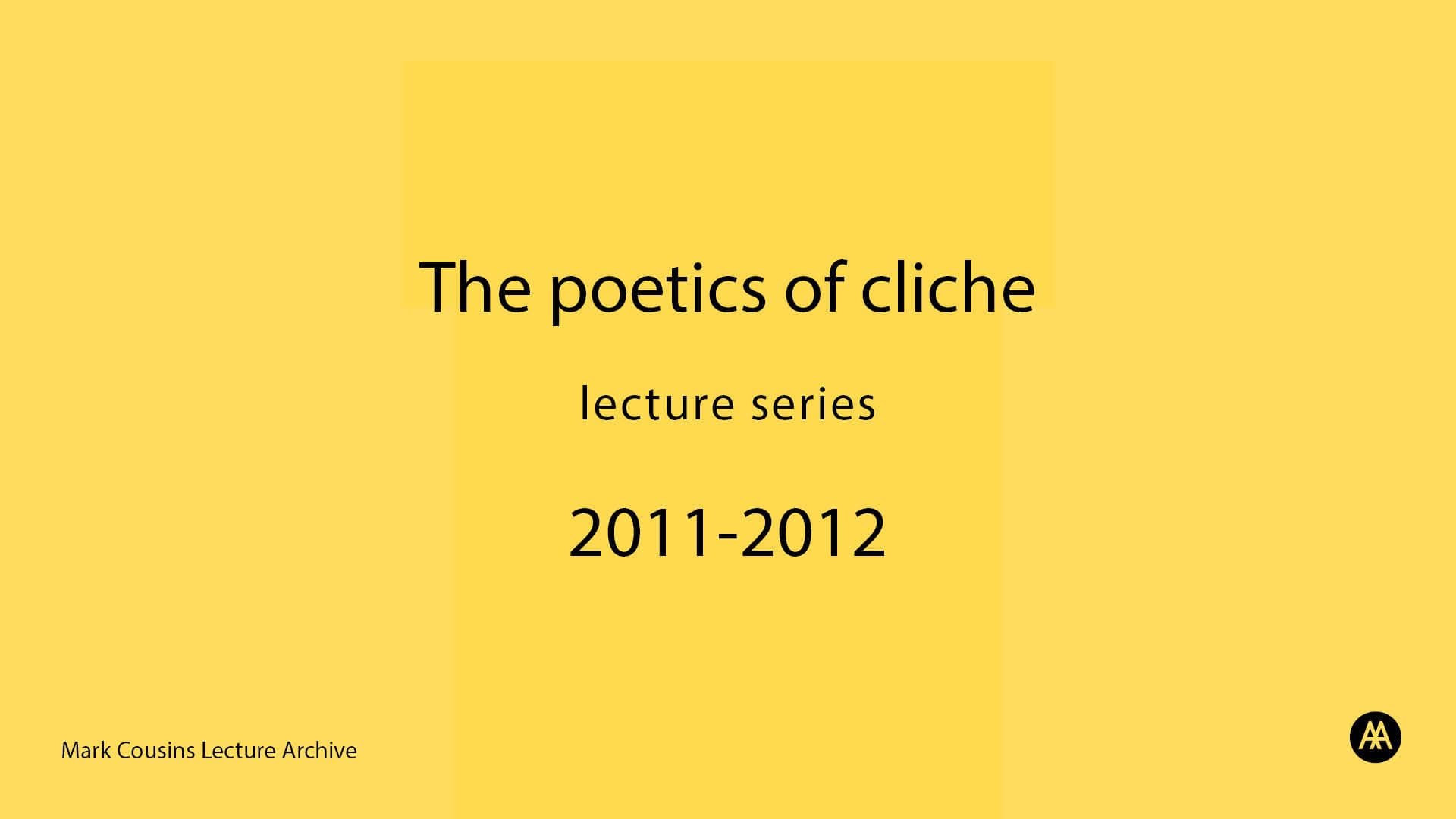 Admin History: The recording is of the 5th lecture in the series entitled 'The Poetics of Cliche', given by Mark Cousins as part of the AA Open Lecture series, 2011-2012. In this lecture, Mark Cousins looks into ways in which the subject is captured in the imaginary and how concepts materialize themselves. Attention is paid to notions of the ubiquitous and the generic, their relation to reproduction and mass production and ultimately clich.