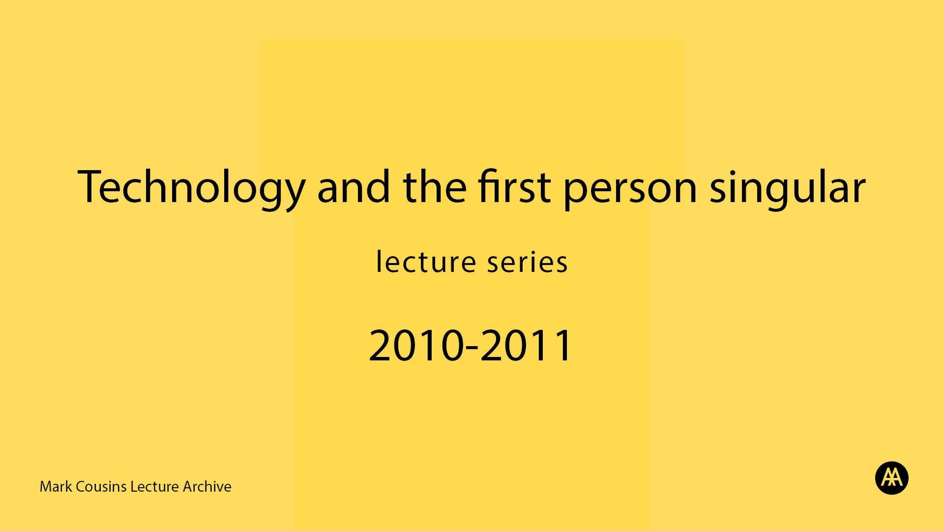 Admin History: The recording is of the 6th lecture in the series entitled 'Technology and the First Person Singular', given by Mark Cousins as part of the AA Open Lecture series, 2010-2011. In this lecture, Mark Cousins develops a general account of the relationship between sense experience and technology. He questions Man's proposition as the measure of all things within the creative world, placing himself in the epicentre like a god. He reflects upon the human comparison with God as a narcissistic projection and that the computer will never equal the mind because it is incapable of making mistakes.