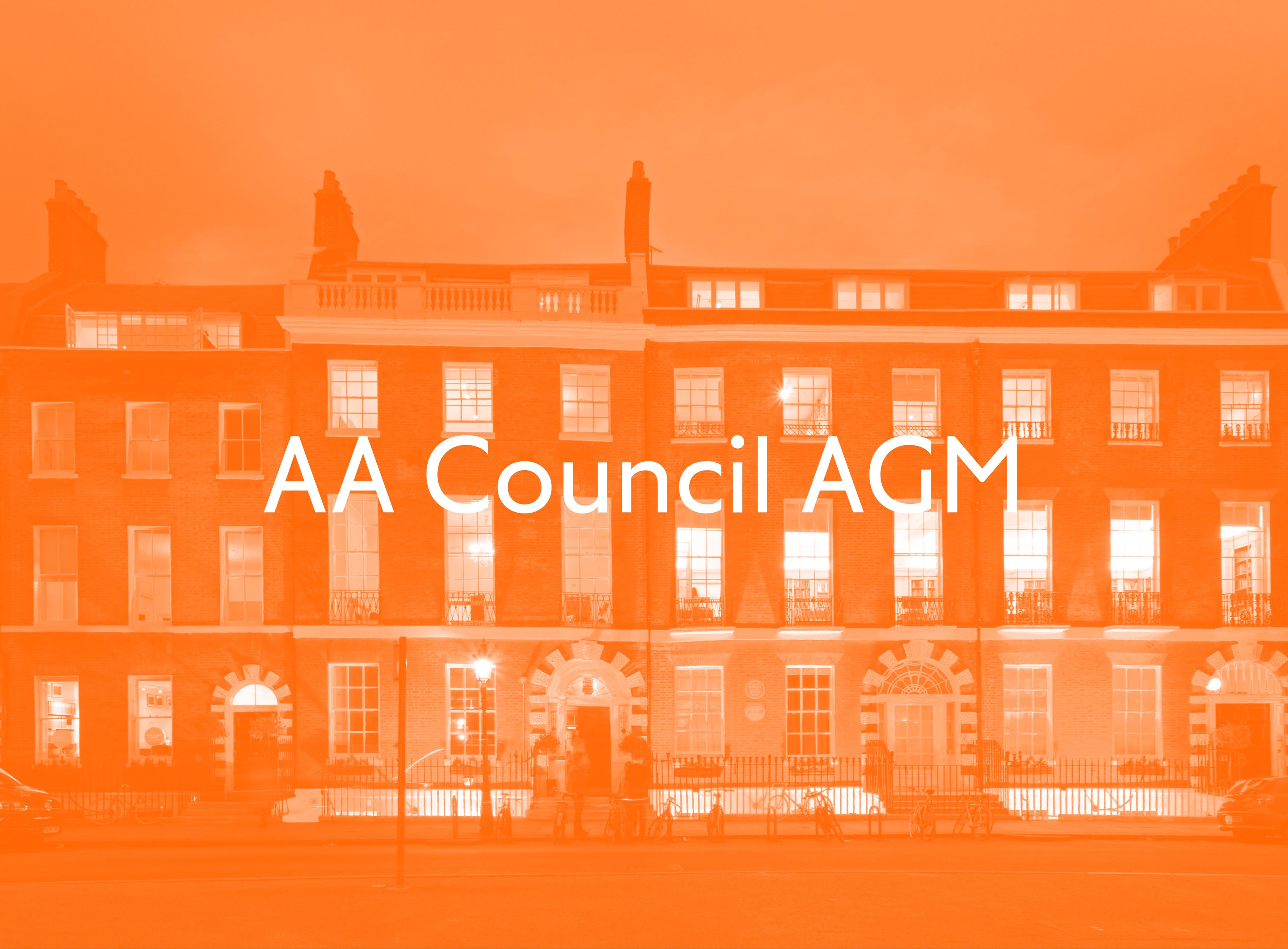 Notice is hereby given that the Annual General Meeting of the Registered Members of the Architectural Association (Inc.) will be held in the lecture hall at the AA, 36 Bedford Square, London and via Zoom on Monday 04 December at 6.30pm GMT.