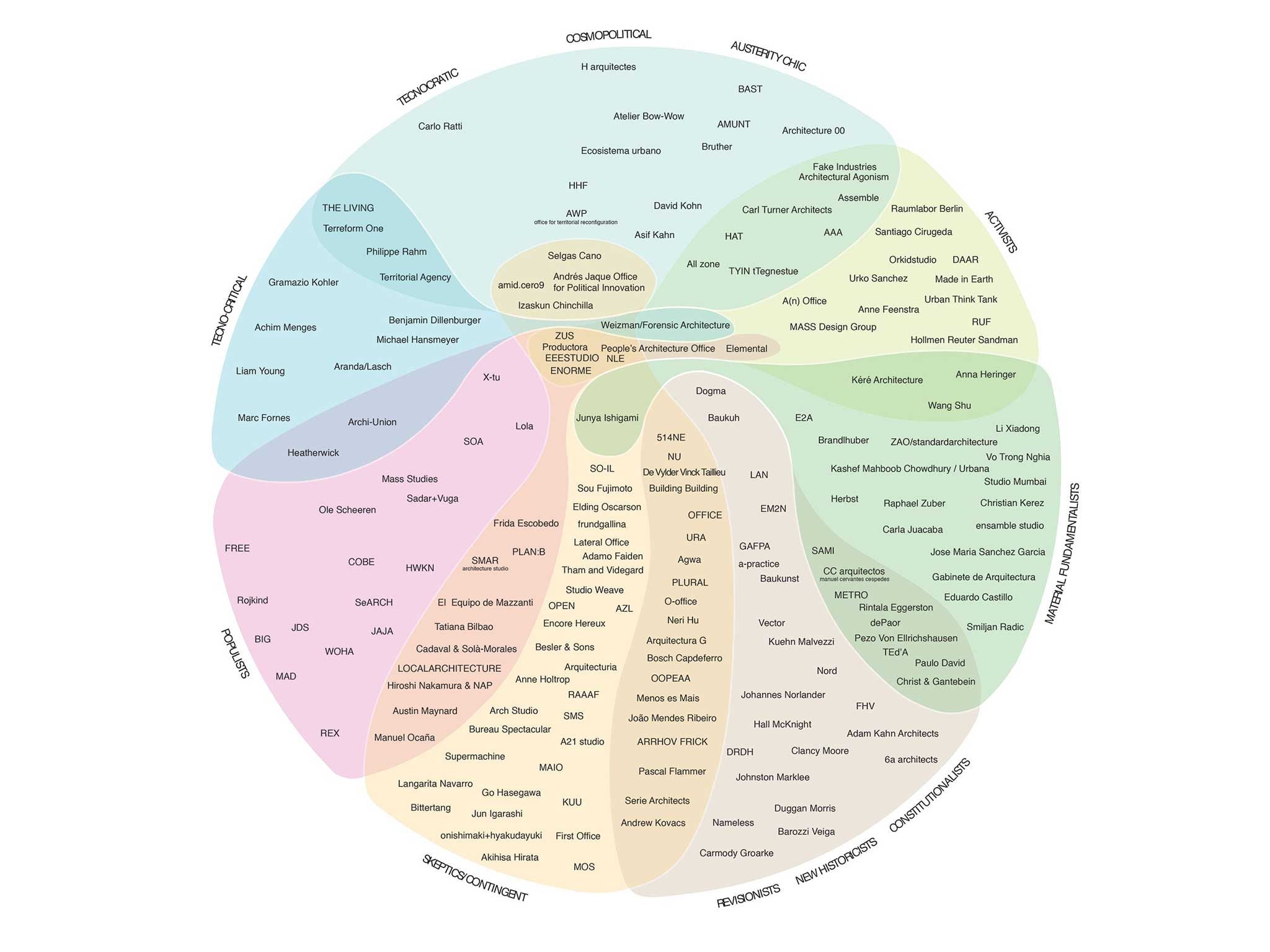 Challenging the outlined categories, their relationships and their featured protagonists, the expected outcome of the series is a new iteration of the diagram. The discussions will take place across different cities around the world throughout 2017 with the participation of several of the offices featured in the map.