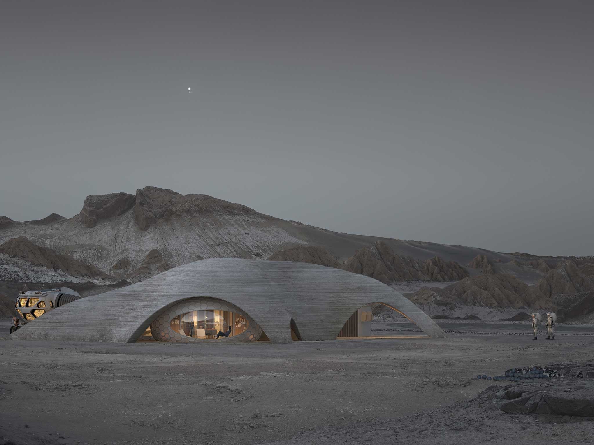 In 2015 NASA set up the 3D Printing Centennial Challenge. This NASA competition sought perspectives from outside the traditional aerospace industry to explore how a human habitat could be designed and delivered on Mars using autonomous 3D printing technologies. Hassell’s entry for the competition took a slightly different angle to most of the other competitors as it was a design-led approach to an otherwise technical and engineering-focused task. For this, they collaborated with a wide range of experts and scientists such as Mars meteorologists, space system engineers, space anthropologists and radiation experts. They also partnered with Eckersley O’Callaghan to design the external shell which could be constructed entirely by autonomous robots using Mars’ natural regolith.