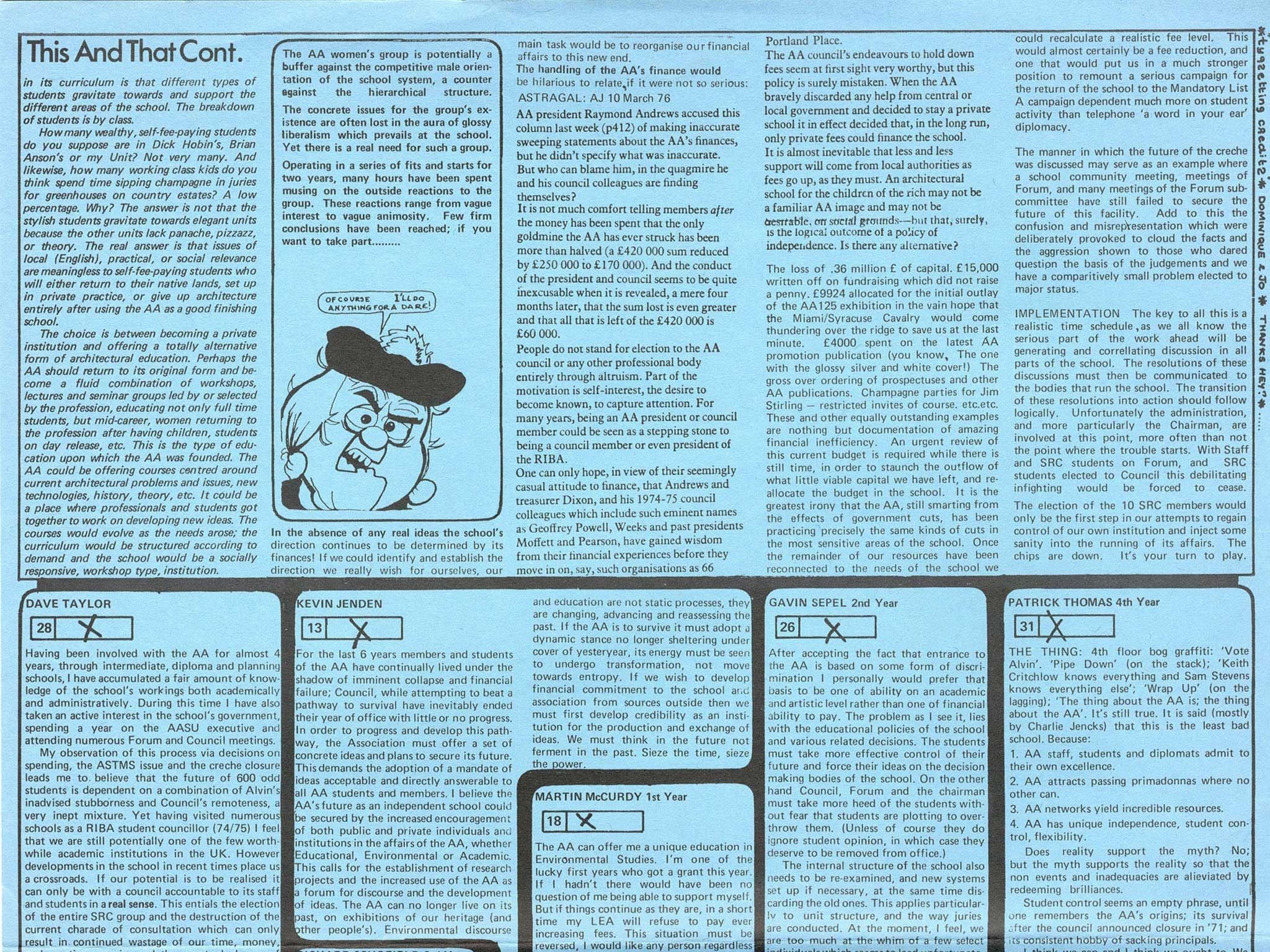 The AA is a participatory democracy, unique in that its Director is elected by the School Community and amendments to its constitution are voted upon by its global membership. As part of our Directions series this autumn, we will make this democratic process public through a series of conversations between the new AA Director Eva Franch and AA Students, Academic Staff, Members and Alumni to discuss the future of the school and navigate the way forward together.