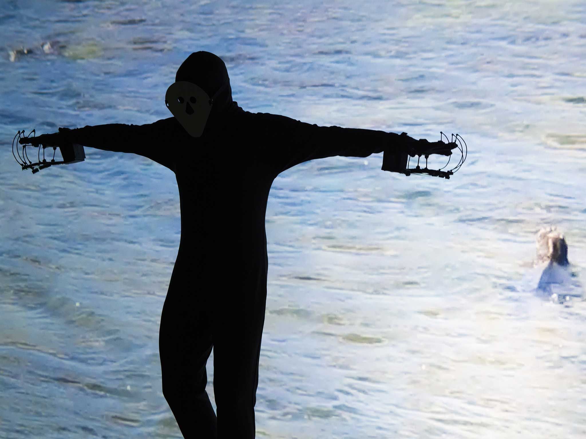 Photo: Documentation of Performance, Spiritual Gloves, 2017 by Eduardo Navarro on the event Fishing for Islands at TBA21, curated by Chus Martínez
