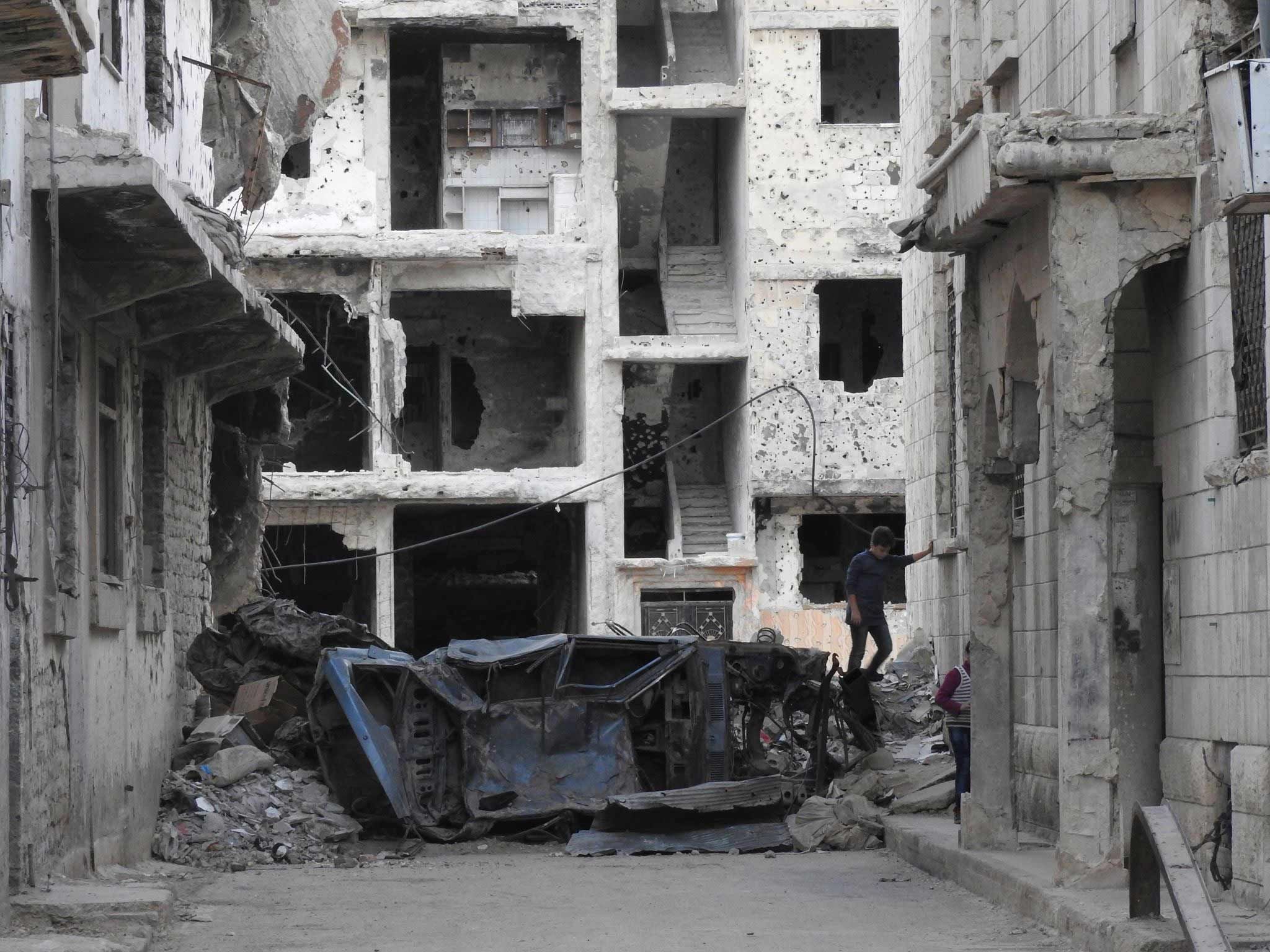Caption: Destruction in Homs, Syria