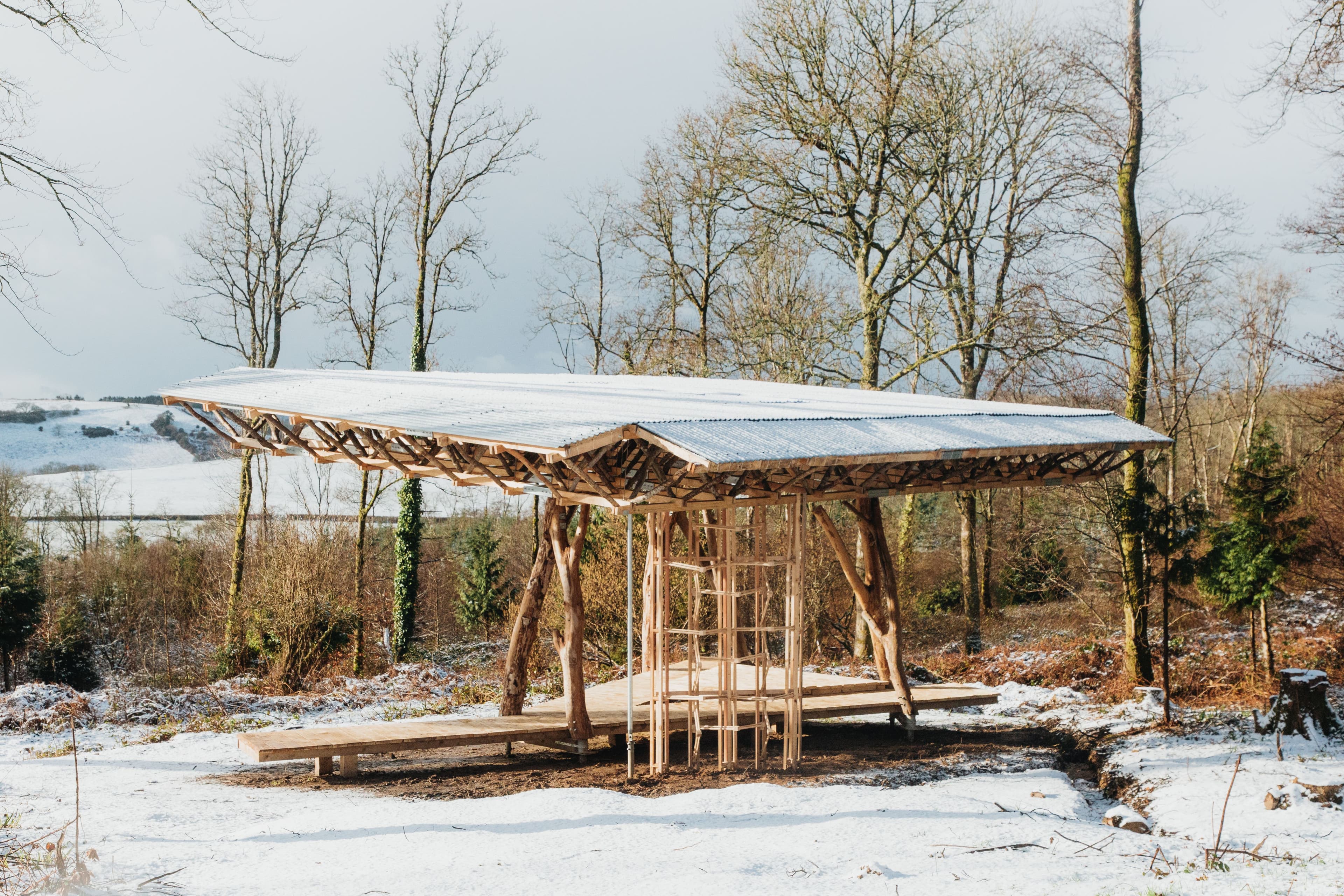 Carefully nested within the fabric of the industrial woodland at Hooke Park, the Field Station is a flexible-use structure that provides a field base for research and teaching, a shelter for our foresters and for passing walkers, and an outdoor classroom for local forest schools, as well as being a base for informal gatherings, talks and events on site. In the longer term, the Field Station is imagined as an observatory for monitoring change, as the neighbouring agricultural landscapes in view from the structure undergo a rewilding programme and as the forestry growth and harvesting evolves around it. The Field Station received a 2023 Wood Award for Research and Innovation.